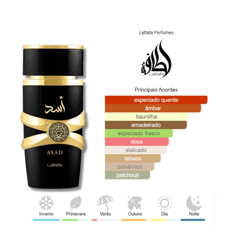 Asad de Lattafa, é uma verdadeira obra-prima da perfumaria que personifica a elegância atemporal e o poder cativante, não é apenas um perfume, é uma declaração de elegância.