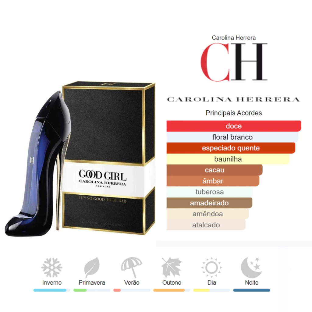 Good Girl foi criado por Louise Turner e Quentin Bisch. As notas de topo são: Amêndoa, Café, Bergamota e Limão. As notas de coração são: Tuberosa, Jasmim Sambac, Flor de Laranjeira, Rosa Búlgara e Raíz de Orris. As notas de fundo são: Fava Tonka, Cacau, Baunilha, Pralinê, Sândalo, Almíscar, Âmbar, Madeira de Cashmere, Patchouli, Canela e Cedro.